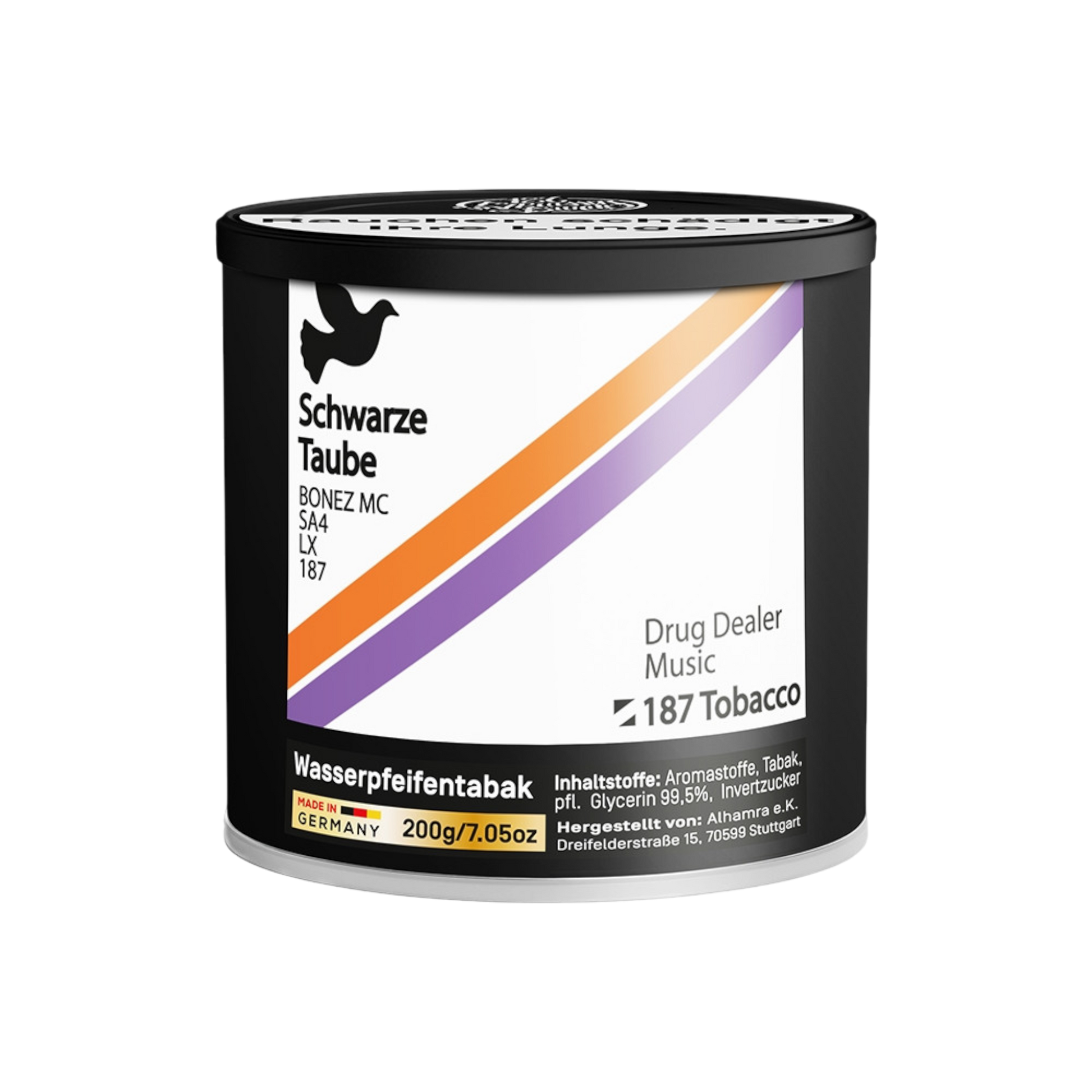 Mit dem Schwarze Traube bzw. "AMG" Shisha Tabak 200 g von 187 erlebst du den Geschmack von Traube und Minze in Perfektion. Der 187 Strassenbande Shisha Tabak in der 200 g Dose ist ein absolutes Muss für jeden Shisha-Liebhaber und Fans intensiver Geschmackserlebnisse. Die verschiedenen Sorten dieses Shisha-Tabaks sind bekannt für ihre extrem intensiven Aromen und die herausragende Rauchentwicklung